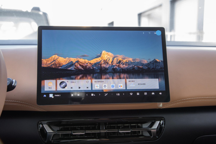 车里面配了彩色行车电脑显示屏和12.8英寸悬浮式中控大屏,这块中控屏显示效果细腻,操作流畅,内置Ling OS车机系统。在实际使用中,低延迟的交互体验还是令人满意的。系统深度适配主流APP,支持Wi-Fi6和蓝牙传输,导航方便,娱乐功能丰富,能满足家庭日常用车需求。车机内置多场景模式:小憩模式可营造舒适休息环境;露营模式能关闭车外灯光,营造氛围感;离车不下电功能则方便临时下车时保持车内空调运行,夏季很实用。
