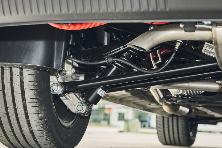 据了解,这套底盘经过5000公里多路况调试,后悬架24个衬套经过精细的刚度匹配,即使是第三排乘客,在长途乘坐时也不容易产生晕车感。
