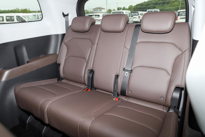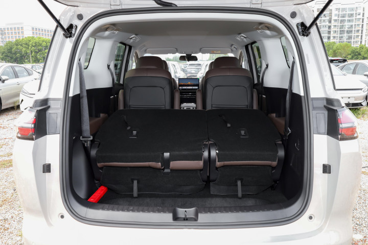 后备厢纵深不大,但是深度可观,常规容积不算小,放6个20寸行李箱没什么问题,销售顾问演示了第三排的魔术翻折功能——将靠背放倒并向前翻折后,行李厢容积可扩展至1202升,轻松容纳2个20寸和4个28寸行李箱。再加上车里面的25处人性化储物空间,包括专属手机槽、贯通式储物盒和衣帽钩等设计,充分考虑了家庭用车的实际需求。