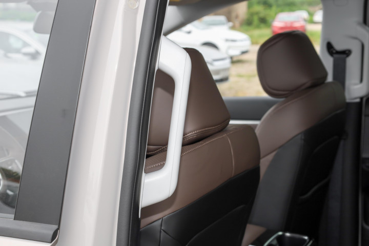 对于有老人和小孩的家庭来说,这项配置显得尤为实用:怀抱幼儿的家长可以轻松上下车;B柱辅助拉手离地高度在1.2米,符合儿童自然抓握习惯;防夹功能则避免了“关门杀”的意外。销售还特别提到,这套侧滑门系统经过10万次耐久测试,锁体和电机来自国际供应商麦格纳,质量可靠。